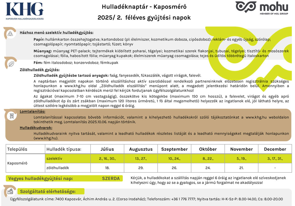 Kaposmérő mintegy 2500 lakosával a térség legnagyobb községe, melyben az Önkormányzat egyik alapvető célja a vállalkozások ösztönzése, segítése. Ennek érdekében az iparűzési adó mértéke mindössze 1,5 %, melyen kívül nincs más, a vállalkozásokat sújtó egyéb adó, így pl. építményadó sincs.